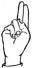 На ћирилици написано ЋЕТКО ПЕЧАНИН састоји се из 12 слова [?]. Исписано ћириличном једноручном азбуком за глувонеме: